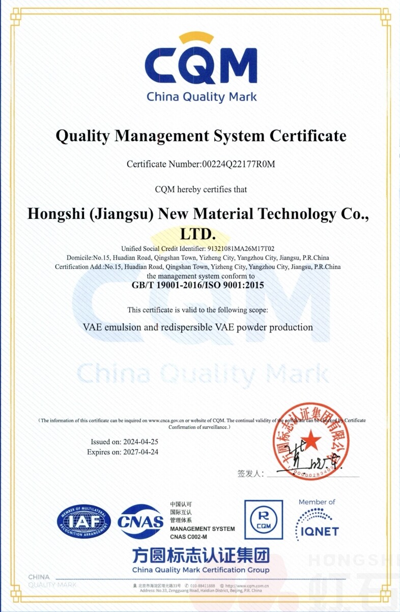 Hongshi (Jiangsu) New Material Technology Co., Ltd. является профессиональным производителем и экспортером VAE-эмульсии и повторно диспергируемого порошка в провинции Jiangsu.